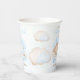 Cute Paper Cups for boy baby shower. The soft pastel blue, ivory and beige colors with a cute sleeping baby bear boy on the clouds with the balloons. Easily personalize the text. Great for a lovely boy baby shower party all year round. :) - Kate Eden Art