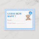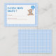 "Add some fun to your baby shower with this 'We Can Bearly Wait' blue Guess How Many game card. Featuring a sweet teddy bear and soft blue gingham design, this playful game invites your guests to guess the number of items in a jar. A charming and interactive way to celebrate the upcoming arrival of your little one!"
