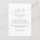 Share the details of your big day with elegance and style using this minimalist wedding details card. Featuring a chic blue color palette, calligraphy script, and stylish typography, this card is perfect for adding a personal touch to your reception. The ampersand monogram initials add a sophisticated flair, while the simple design keeps it classic and timeless. Ideal for directing guests to your wedding website, this card adds an elegant and traditional element to your celebration.