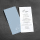 Complete your reception with this wedding menu, featuring a delicate blue floral watercolor design. Perfectly suited for table decor, it beautifully lists each meal course in an elegant calligraphy script paired with refined typography. A sophisticated touch to your reception decor, this menu card adds both style and function, helping guide your guests through the dining experience while complementing your wedding’s romantic atmosphere.
