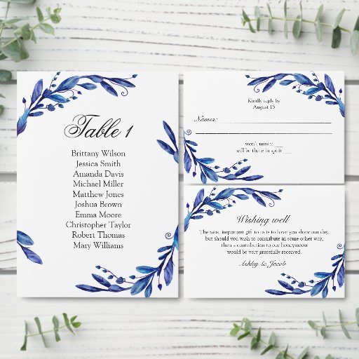 Blue wedding reserved sign. Navy floral table card