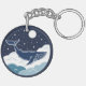 Whimsical illustration of a blue whale floating above the clouds under a blue sky.