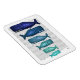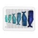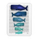 Blue Whale Family by Fab Funky. Features whales in varying sizes and colors with a book page for a background.|191846D