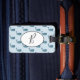 Enjoy spotting your luggage easily with our blue whale pattern monogram luggage tag. Customize with your last name initial.
