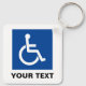 Blue wheelchair disability symbol custom keychain. Create your own personalized key chain. Handicapped / disabled logo. Add your own text. Blue square with white handicap graphic. Double sided print.