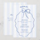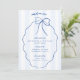 Blue Whimsical Hand Drawn Bow Wedding Menu with handwritten style font and light blue stripes. Add a thank you note on the reverse