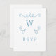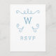 Blue Whimsical Flourish Monogram RSVP Postcard