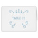 Modern and simple Whimsical Flourish Monogram Wedding Table Number Card featuring an elegant swirl motif in blue. Easy to customize, add the appropriate table number(s) in the text field provided. Click "Customize It" to find more personalization options.