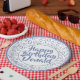I ordered personalized baby shower plates and I loved them and they were delivered on time they were personalized with thanks for showering our little peanut. The printing turned out good but edge of plates had like tears around the edges I would recommend them to any one having a baby shower or party
