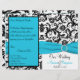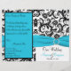 This black and white damask wedding program has an aqua blue PRINTED ribbon and PRINTED diamond jewel brooch that would be perfect for an aqua and black themed wedding. If you need assistance getting your information to fit or to align properly, please email niteowlstudio@gmail.com. Your document will print out as it appears on your monitor. It will NOT be edited for typos or alignment etc. by Zazzle. ****PLEASE NOTE that the higher grade paper is a card stock and does not fold well.