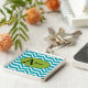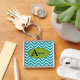 Blue, white, and green chevron personalized keychain. Add your own text.