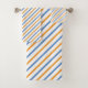 A Blue, White And Orange Stripe Bath Towel Set For That Modern Look