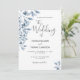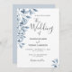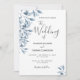 Blue white botanical script wedding invitation