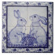 Blue & White Bunny Rabbit Dedham Delft Whimsical Ceramic Tile