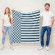 Blue & White Checker & Stripes Repeat Pattern Fleece Blanket