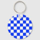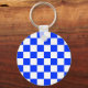 Blue White Checkered Check Pattern Keychain