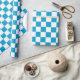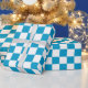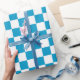 Trendy blue and white checkered/checkerboard pattern gift wrapping paper.