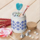 Diamond Checkered Geometric design in blue and white. Four places for customizing this Candy Jar that will be perfect for a gift. Simple elegance.