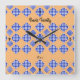 Blue White Checkered Light Beige Square Wall Clock