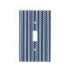 The light switch cover shows a dark blue chevron design on a white background. Please contact KBM D3signs for color customization of this minimal zigzag design.