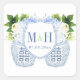 Blue & White Chinoiserie Initials And Date Wedding Square Sticker