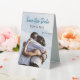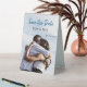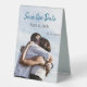 BLUE WHITE CLASSIC SCAN QR SAVE THE DATE TABLE TENT