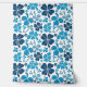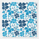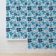 Blue White Clover Shamrock Hand Drawn Pattern Wallpaper. Beautiful and simple 4 leaves clovers in different blue colors on a white background. The design is a digital drawing.