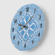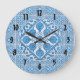 A decorative wall clock with black numbers and a background pattern of Delft floral tile art retouched and reproduced from an actual antique tile. It has a handpainted feel and features a classic blue and white floral pattern with cornflowers.