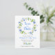 Blue, green, yellow and white chamomile daisy flower floral wedding save the date announcement. This blue and white daisy wedding save the date is a good choice for a spring wedding or a summer wedding. This chamomile or shasta daisy flower wedding save the date card features beautiful watercolor watercolor wreath of white daisies with yellow centers paired with blue and yellow flowers and green leaves. This daisy wedding save the date has a great country look, so it's perfect for a country style wedding.