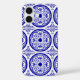 An iPhone case with an original delft-inspired faux tile pattern in blue and white with ornate scrolls.on the edges and a center with a gothic pattern of crosses and leaves. Change color between tiles, add your name and message and more.