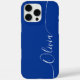 Blue White Elegant Calligraphy Script Custom Personalized Name iPhone 16 Pro Max Smart Phone Cases features a modern and trendy simple and stylish design with your personalized name in elegant hand written calligraphy script typography on a blue background. Designed by ©Evco Studio www.zazzle.com/store/evcostudio