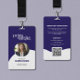 This crisp navy and white ID badge blends structure with subtle color — ideal for polished workplace branding. With space for custom text, job title, photo, QR code, and logo, this design proves to be a versatile choice for both modern and classic business, educational, healthcare, law and corporate settings.