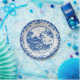 Blue and white faux porcelain floral flower chinoiserie ginger jar Chinese Ming dynasty willow pattern paper plates.