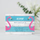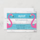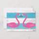 Fun pink flamingos accent this trendy Wedding Response Card on a blue and white striped wood background, making it perfect for a destination, beach, Hawaiian, Caribbean or tropical wedding. Coordinating items can be found in the Blue Flamingo Beach Wedding Collection.
