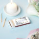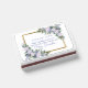 Custom Matchboxes make great party favors. These pretty favors feature and gold frame decorated with white roses and blue flowers. A gold frame surrounds 3 lines of custom text.