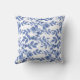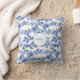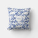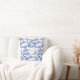 Blue White Floral Leaf Pattern Monogram Throw Pillow
