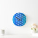 Blue White Floral Modern Flowers Trendy Chic Round Clock
