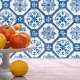 Refresh your space with this beautiful blue and white faux tile wallpaper. Perfect for a kitchen backsplash, bathroom and more.