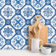 Blue White Floral Mosaic Tile Pattern Peel Stick Wallpaper