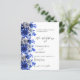 A white background, decorated with blue and white flowers. Personalize and add your names and details.