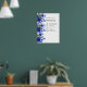 A white background, decorated with blue and white flowers. Personalize and add your names and the details.