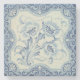 This is a blue floral vintage watercolor drawing with a decorative border around the edges on a white background. Victorian majolica Antique tile.