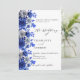 Plain white envelopes are included with paper invitations and will come to fit the invitation size you select. If you don’t need the envelopes, you may choose to not receive them by selecting the dropdown below "Envelopes" and choosing "None." If you’d like to have a design on your envelopes, you can browse all of these available envelopes to find the design that complements your Blue White Florals Script Wedding Invitation.