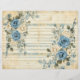 Antique vintage blue and white florals distressed scrapbook junk journal paper sheet.
