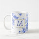 traditional blue white flower china pattern mug side initial. On trend yet timeless in modern homes and country kitchens. blue white flower china with initial monogramme text which is customizable