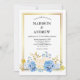 Blue White Flowers Gold Frame Elegant Wedding Invitation