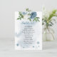 blue white flowers greenery seating chart card