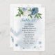 romantic blue and white flowers with some pretty green leaves wedding seating chart card.