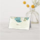 blue white flowers greenery wedding place card