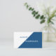 Modern blue and white geometric business cards feature your name on the front in blue text on white and white text on blue. The back features a customizable QR code, your job title/specialty/company name, and contact information on a reversed blue and white color block pattern to the front. Personalize the QR code with your portfolio or website link and add your text in the sidebar.